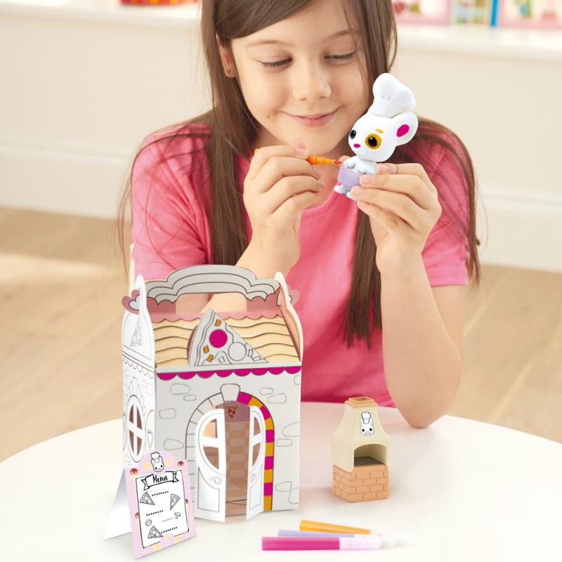 - Сборный домик "Пиццерия" и флокированная фигурка мышки, аксессуары