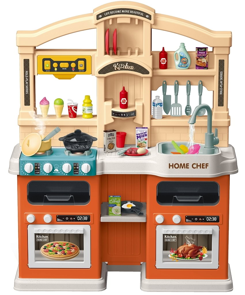 На яркой игровой кухоньке ребенку будет очень легко представить себя настоящим поваром.