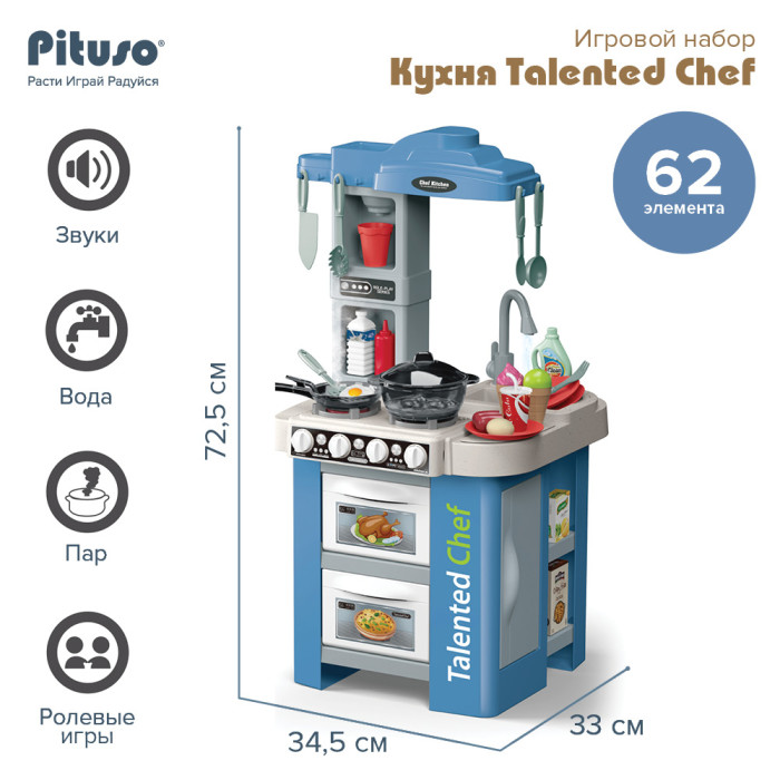 Игровой набор Pituso Кухня Talented Chef 62 эл-та ( свет,звук) HW21093891