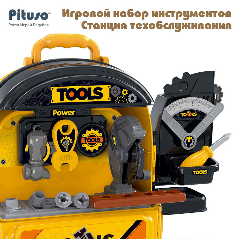 Ведь в игровом наборе инструментов есть: отвертки, пила, ключи гаечные, шурупчики, молоток, фигура мастера;