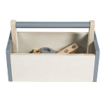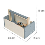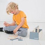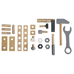 Деревянный ящик оснащен множеством детских инструментов и способствует развитию творческих способностей и моторики маленьких строителей.