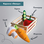 - Корзина с овощами: горох, грибы, помидоры и морковь,
