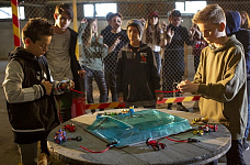 Хищники и Титаны спустя 50 лет войны встретились вновь. Кто из них победит? Устараивай битвы между трансформерами из набора: с помощью пускового устройства запусти одновременно волчков-трансформеров на специальной арене, предназначенной для проведения соревнований и битв или трансформируй их в мотоциклы и устрой настоящие гонки, используя трамплин на арене.