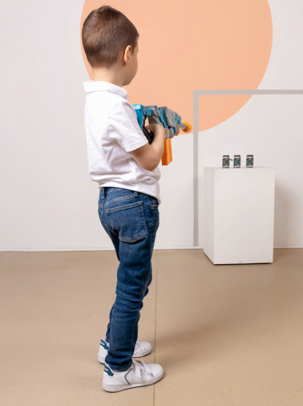 - Дальность стрельбы достигает 12-15 метров. В комплекте: скорострельная винтовка, мягкие пули 10 шт., мишень 3 шт.
