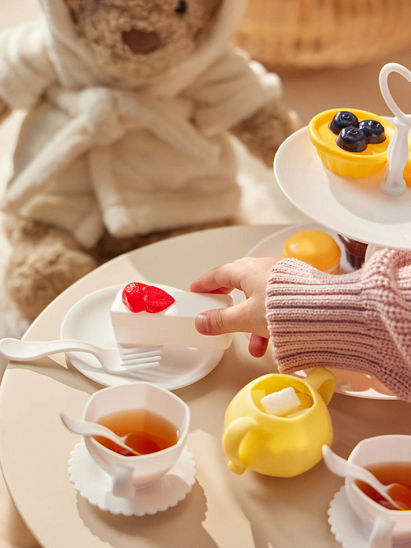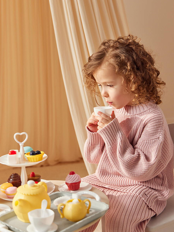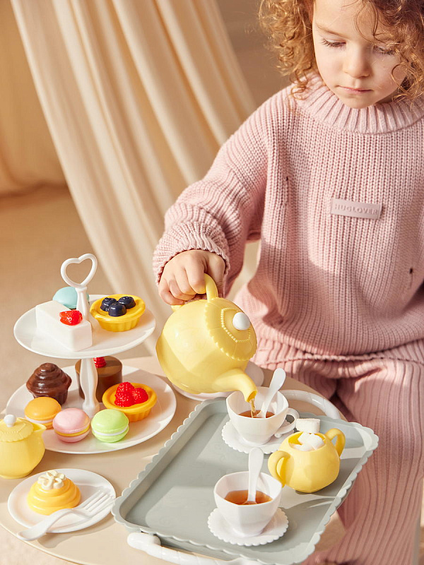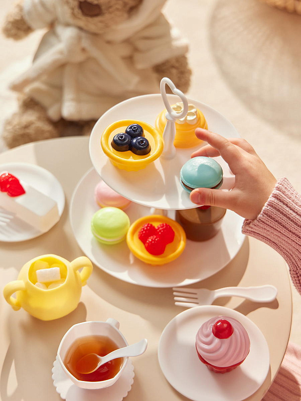 Игровой набор TEA PARTY TIME превращает чаепитие с игрушками в атмосферное и увлекательное занятие, даря ребёнку радость игры и обучения. В комплект входят миниатюрный чайник с крышкой, сахарница, две чашки с ложками, сервировочный поднос, а также двухъярусная подставка с разнообразными десертами - яркими макаронами, кексами и пирожными. Благодаря реалистичности деталей ребёнок сможет почувствовать себя настоящим хозяином чаепития. Играя с набором, ребёнок освоит основы сервировки стола, разовьёт мелкую моторику, научится взаимодействовать в ролевых играх и проявлять заботу о других. Набор способствует развитию творческого мышления, воображения и социальных навыков, таких как гостеприимство и умение общаться. Поставляется в красивой подарочной упаковке.