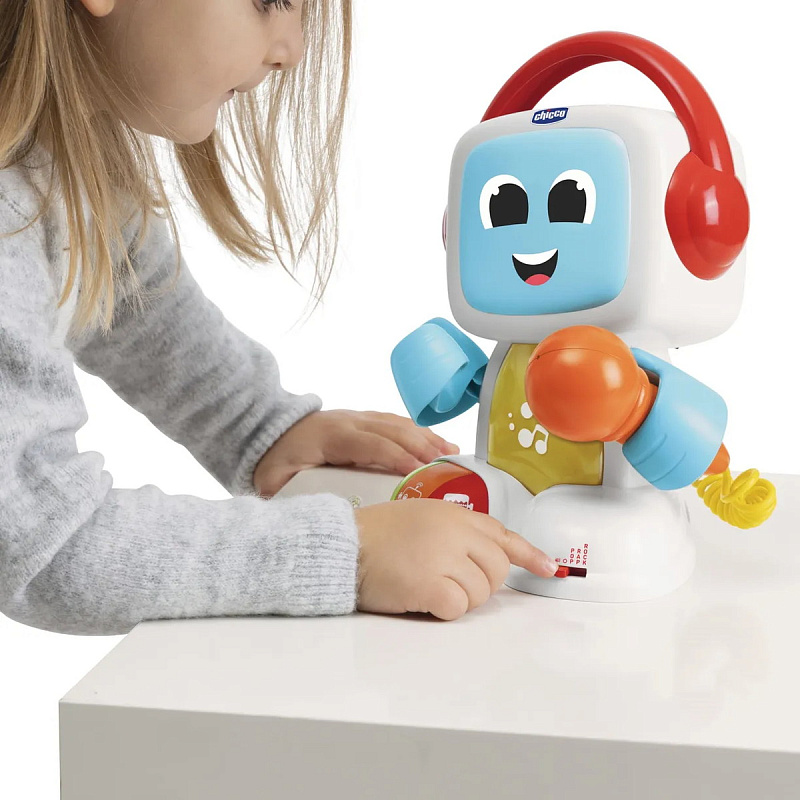 Музыкальная игрушка Chicco Поющий робот станет отличным подаркам для детей от 3 до 5 лет. Выбери одну из 10 мелодий разных музыкальных жанров – поп, рок или рэп и пой в микрофон, чтобы создать свой собственный незабываемый хит. Недостаточно весело? Тогда выбери один из трех эффектов, чтобы изменить свой голос – инопланетянин, робот или монстр. Качественный не режущий ухо звук, надёжная сборка и удобная ручка для переноски полюбятся как детям, так и родителям. Размер игрушки 17х11х25 см.