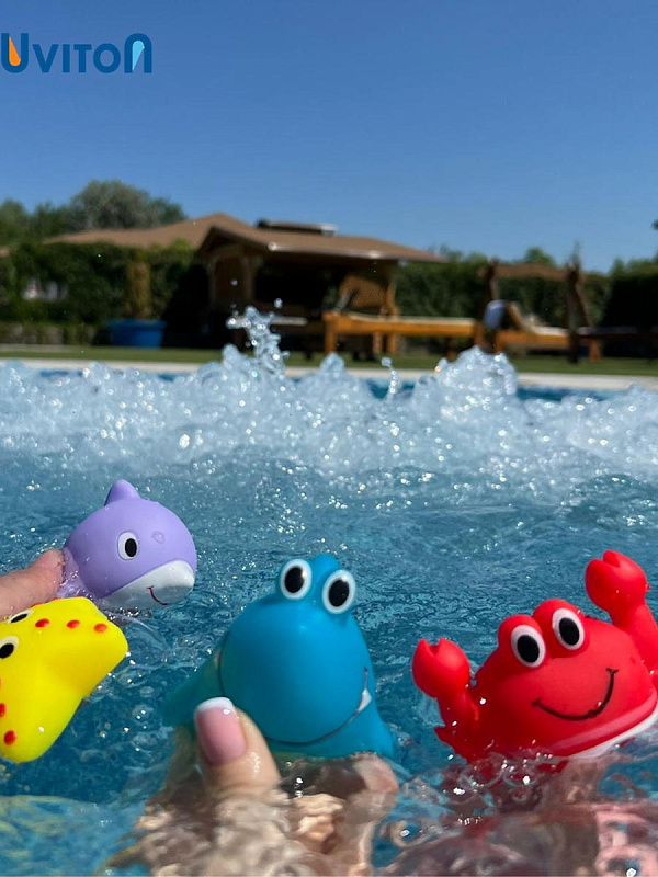 Игрушки можно использовать как брызгалки, сожмите игрушку опустите по воду, внутрь наберется вода, достаньте ее из воды нажмите и через отверстие вода будет вылетать.