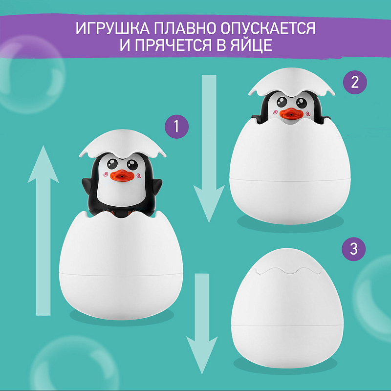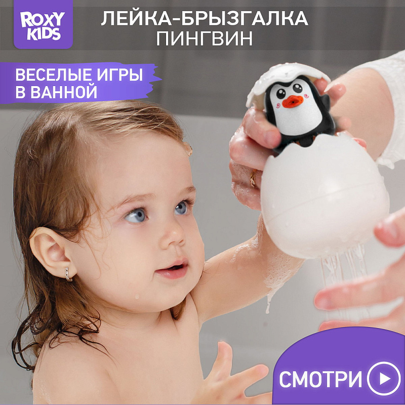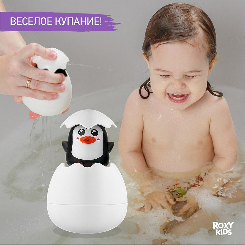 Игрушка для ванной 2 в 1 Roxy-Kids яйцо-лейка REGG-003 чёрный пингвин