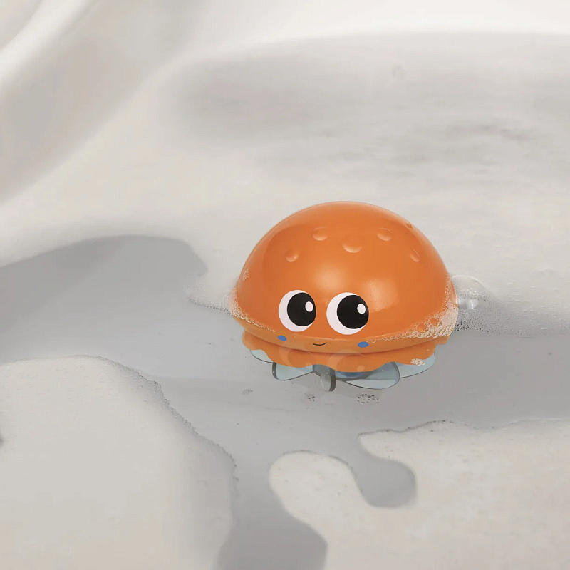 Медуза сделана из безопасных материалов, её края скруглены, а щупальца совсем не жалят. Она развлечёт во время принятия ванны, поможет ребёнку развить навык координации движений рук. Не требует батареек для работы.