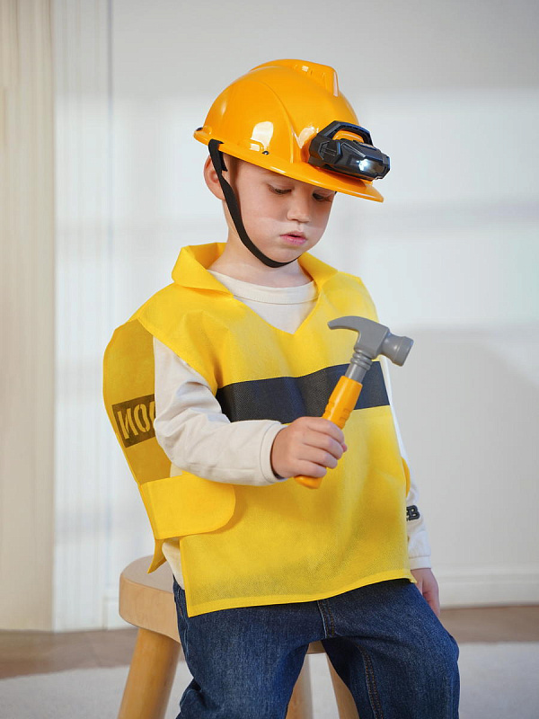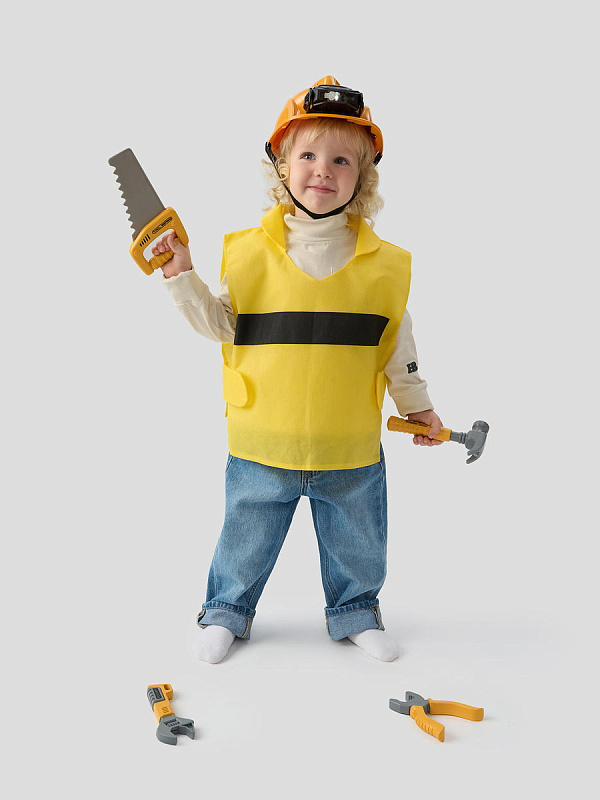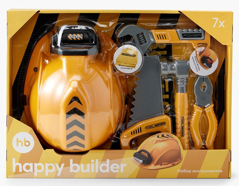 Игрушка инструменты HAPPY BUILDER «ХЭППИ БИЛДЕР» поможет вашему малышу почувствовать себя настоящим строителем! В комплект входят ярко-желтый жилет, каска, молоток, гаечный ключ, пила и пассатижи. С этой игрушкой ваш ребенок сможет развить моторику, координацию движений и воображение. Игрушка подходит для детей от 3 лет.