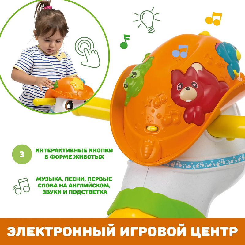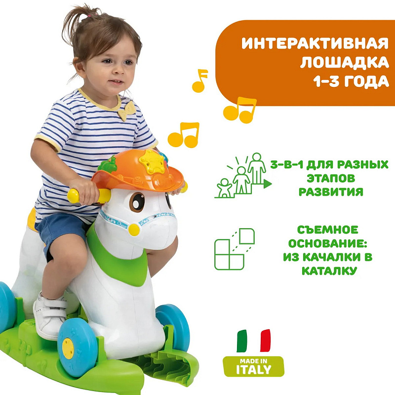 - Звуковые, световые эффекты делают Chicco Лошадка Baby Rodeo колоритнее, интереснее.