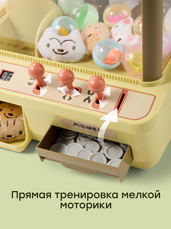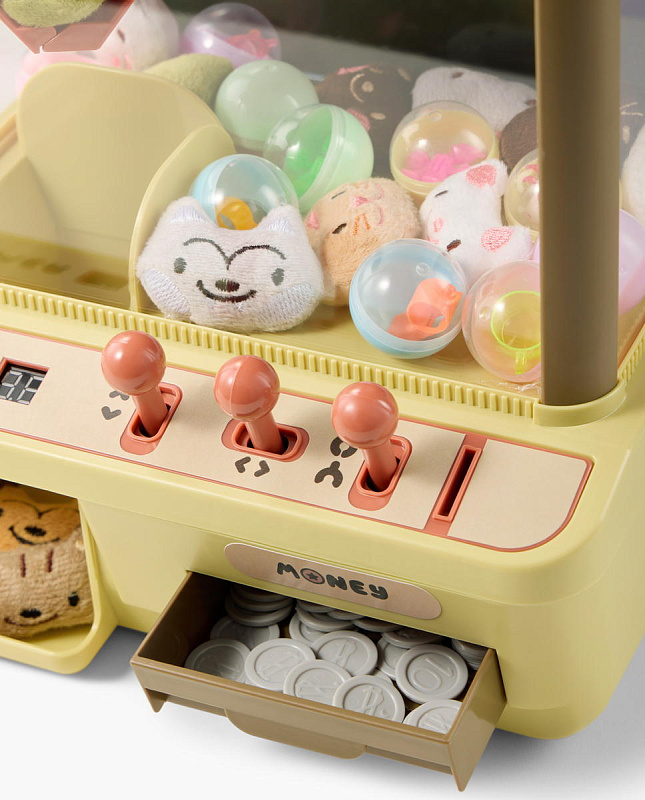 Как настоящий игровой автомат - прозрачная витрина, движущиеся элементы и захватный коготь создают атмосферу мини-аттракциона дома