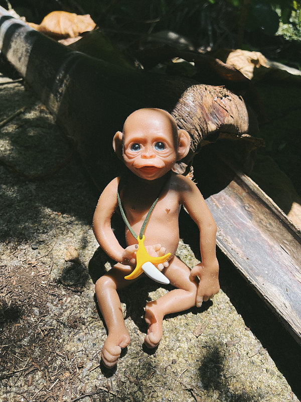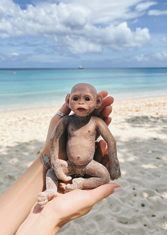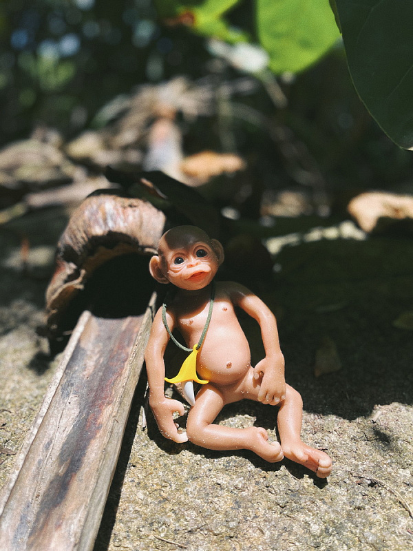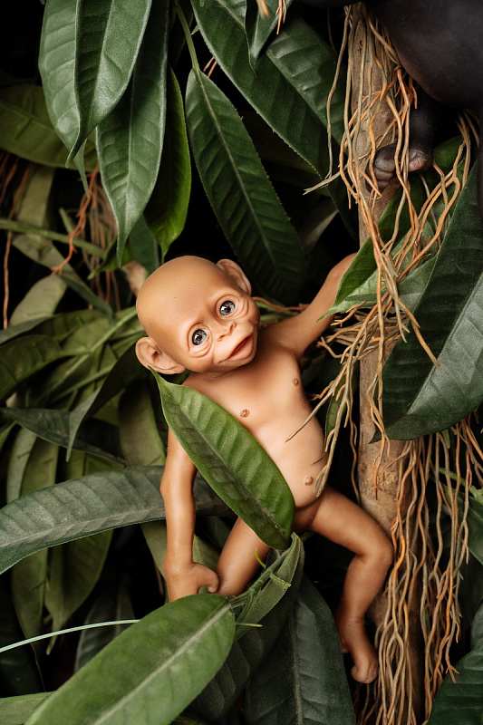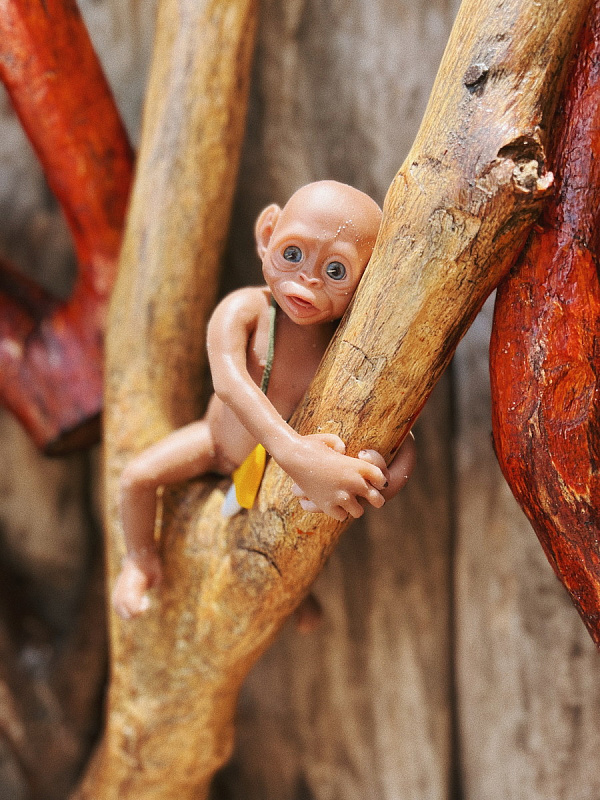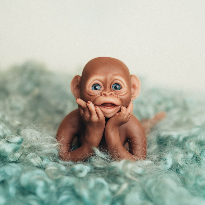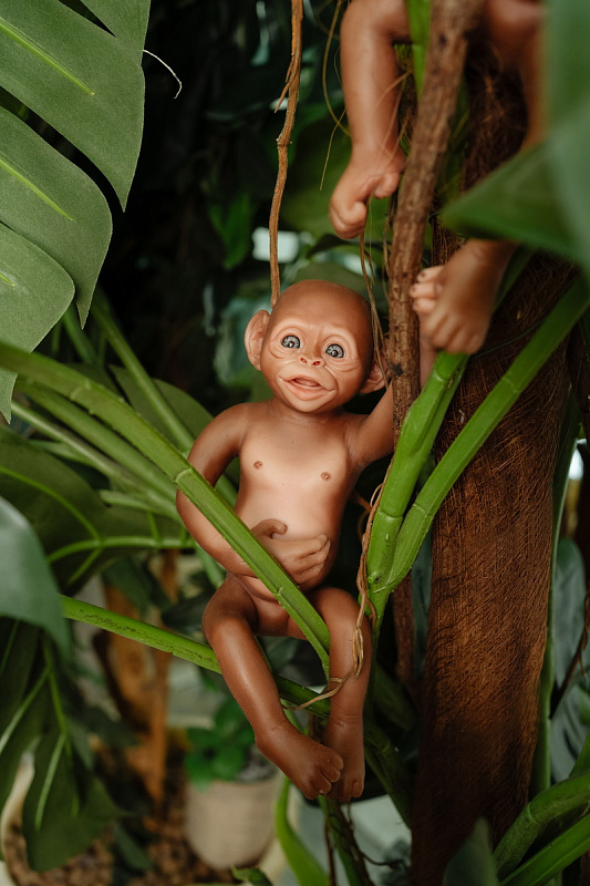 В волшебных джунглях поселилась очаровательная обезьянка. Её любопытные глазки блестят от предвкушения новых открытий, а маленькие ручки так и тянутся потрогать всё вокруг. Этот милый исследователь настолько похож на настоящего детёныша, что кажется, будто он только что спустился с самых высоких ветвей тропического леса. Настолько мягкая и нежная, что её хочется гладить снова и снова.