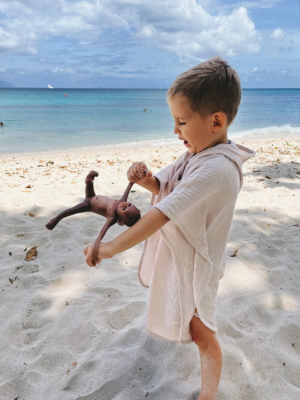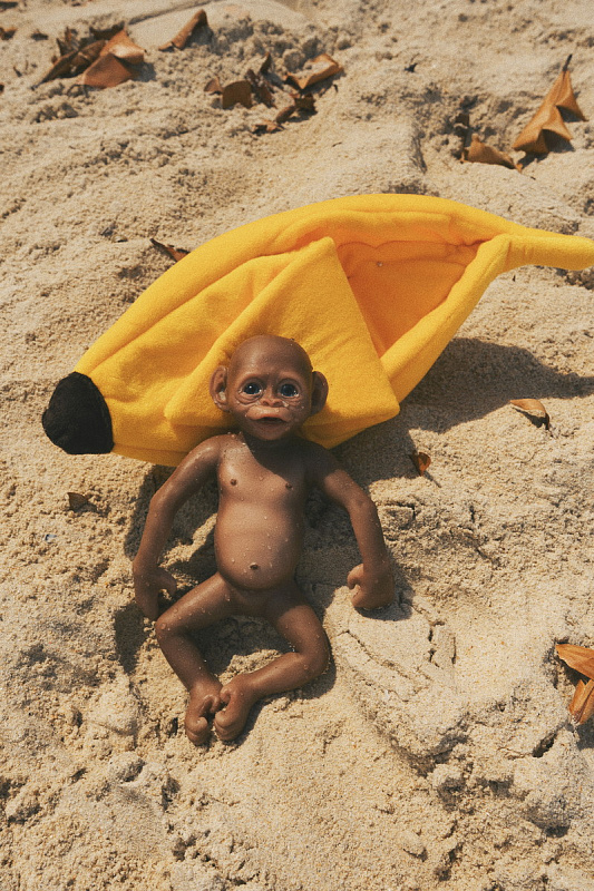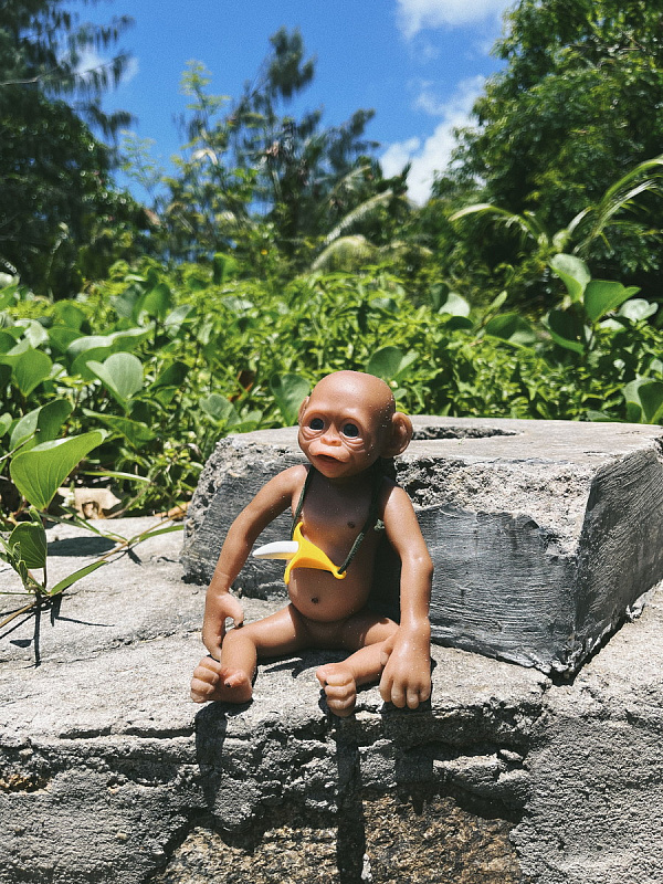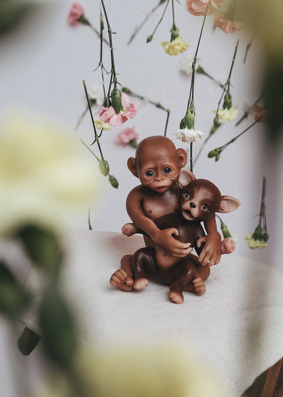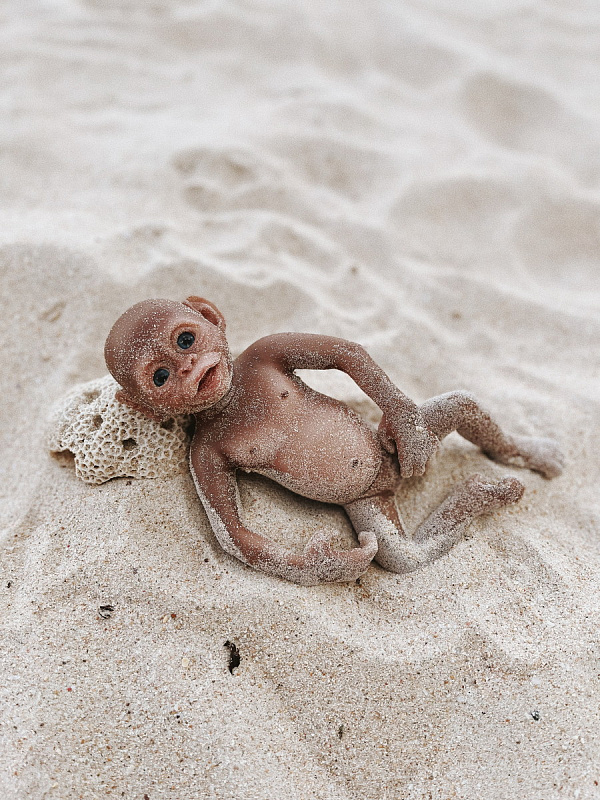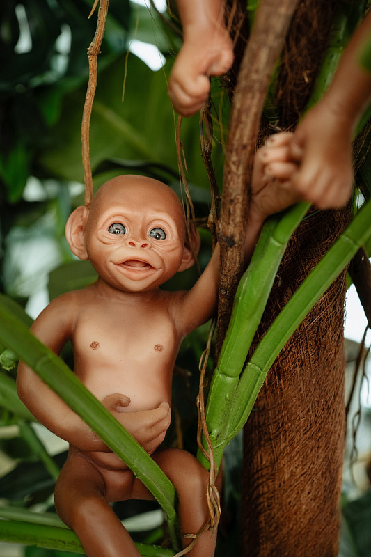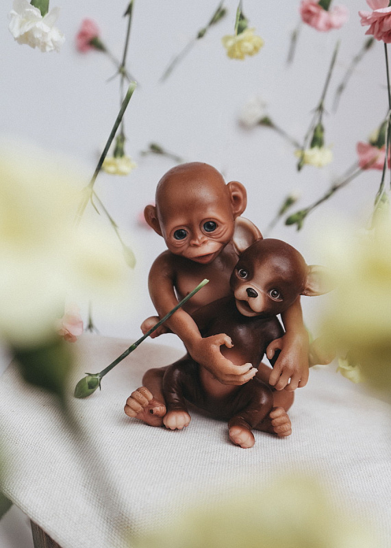 В волшебных джунглях поселилась очаровательная обезьянка. Её любопытные глазки блестят от предвкушения новых открытий, а маленькие ручки так и тянутся потрогать всё вокруг. Этот милый исследователь настолько похож на настоящего детёныша, что кажется, будто он только что спустился с самых высоких ветвей тропического леса. Настолько мягкая и нежная, что её хочется гладить снова и снова.