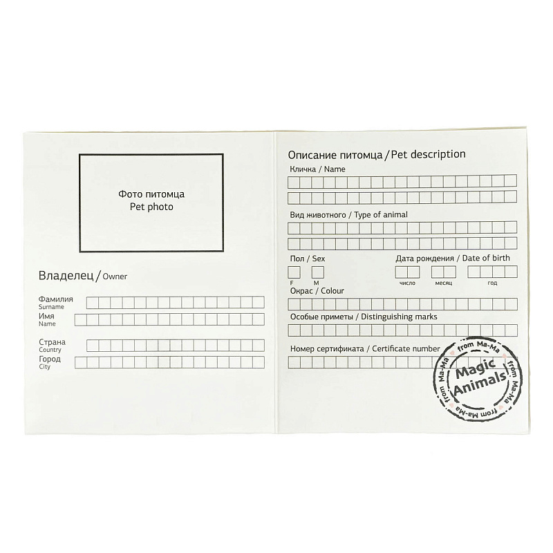 Комплектация: соска-кость, паспорт животного, карточки по уходу
