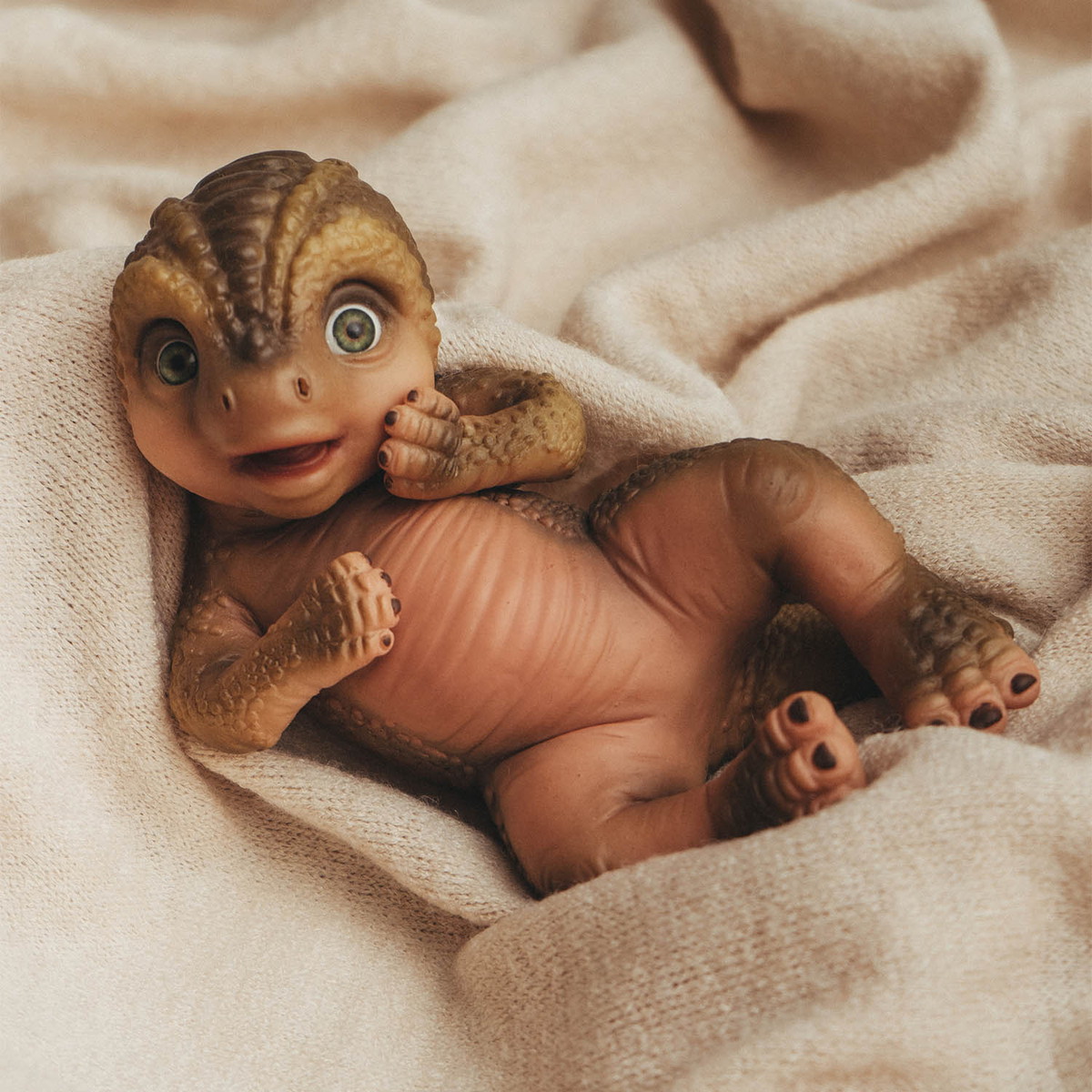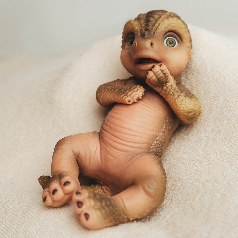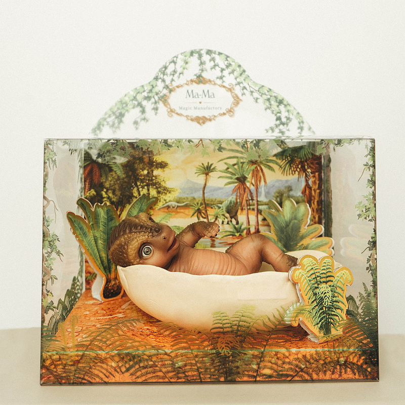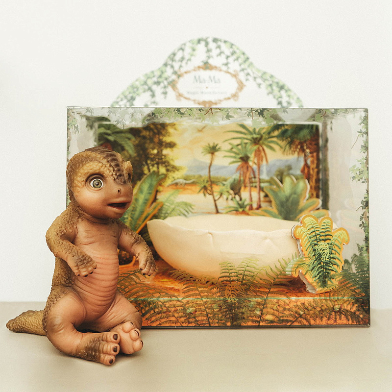Подарочная коробка — как старт экспедиции. Платиновый медицинский силикон, акриловые глаза и ручная роспись создают выразительный образ. Готов к вручению, чтобы открыть мир доисторических приключений.
