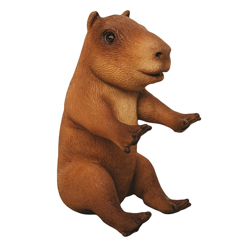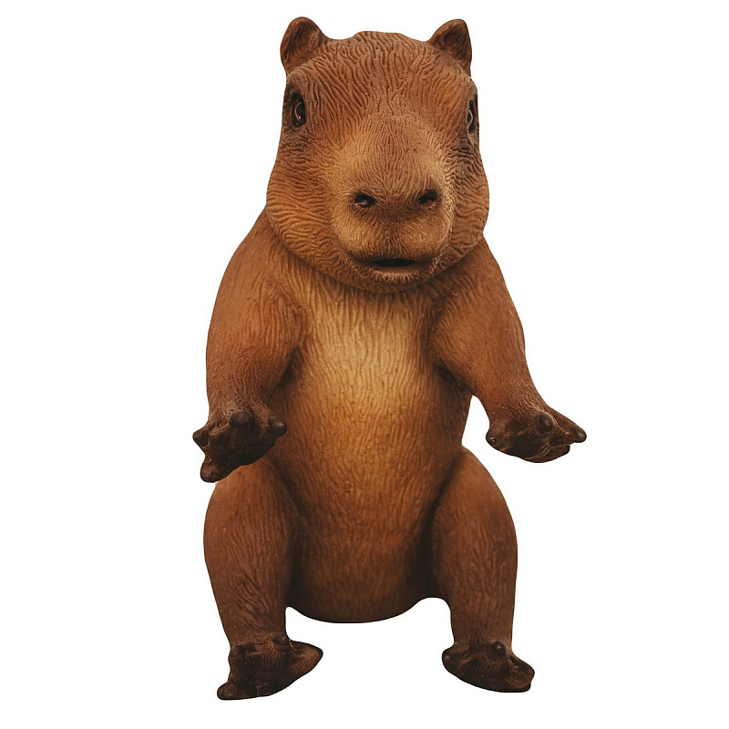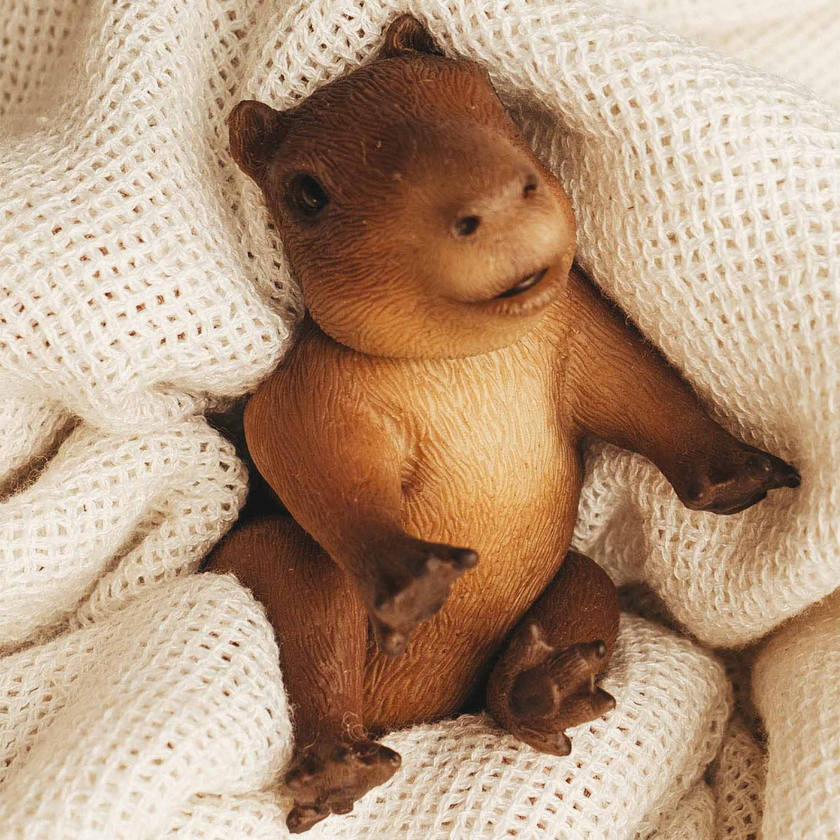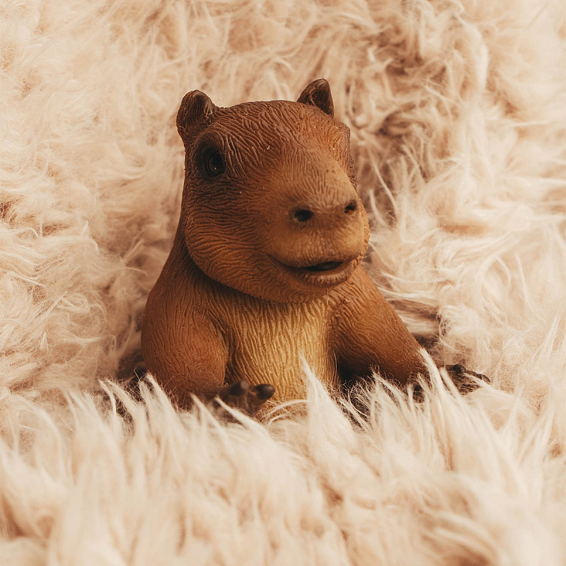 У кромки лесного ручья маленькая капибара присела отдохнуть: тёплая спинка, спокойный взгляд — кажется, вот-вот будет слышно её тихое посапывание. Мягкие линии форм и уютный размер сразу настраивают на заботливую игру.