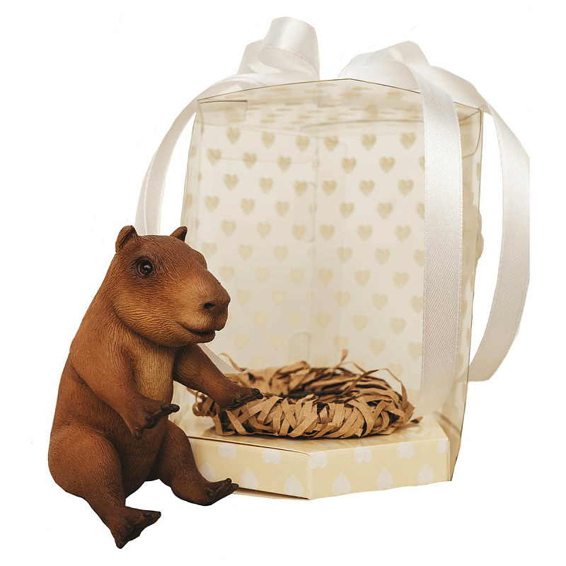 Подарочная упаковка делает встречу с игрушкой особенной: уже при распаковке возникает ощущение праздника. Использованные материалы — платиновый силикон, акриловые глаза и ручная роспись — придают образу живость и тепло. Капибара приглашает в мир тихих прогулок вдоль воды, поиска «лесных сокровищ» и добрых историй перед сном — готовый подарок для детей и взрослых.