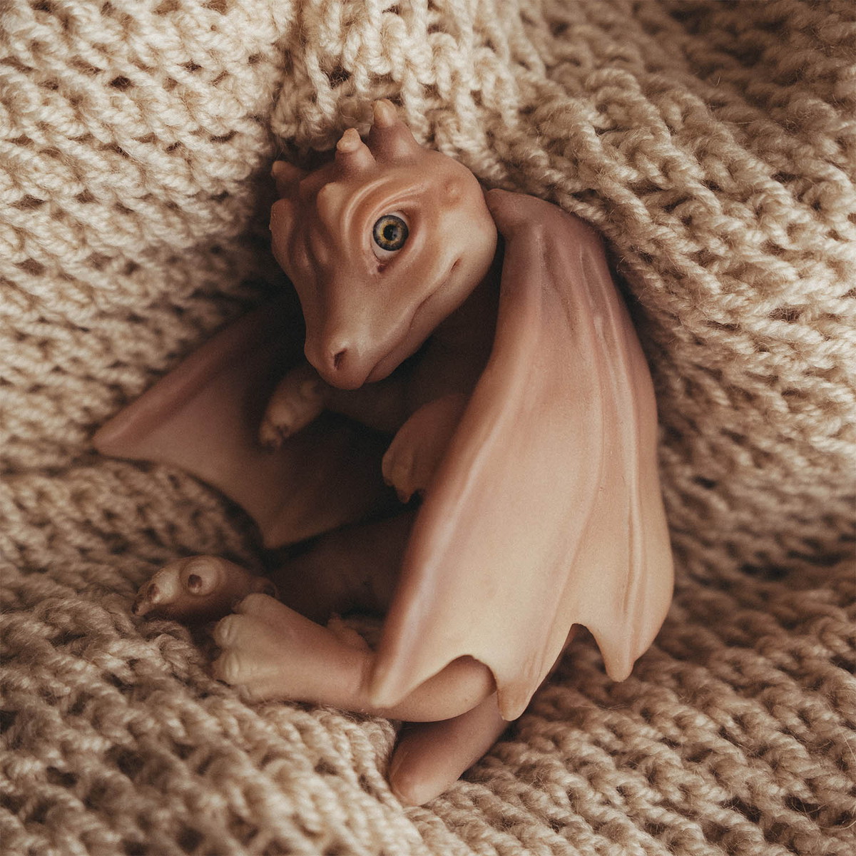 Маленький дракон приподнимает голову — в его глазах мерцают озорство и благородство древней легенды. Он словно хранитель домашнего очага и новых историй.