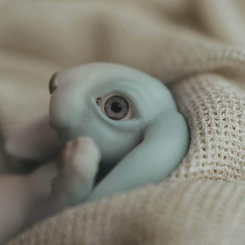 Маленький герой смотрит прямо в глаза и словно зовёт в игру — так и хочется придумать историю и подарить ему уютный дом.