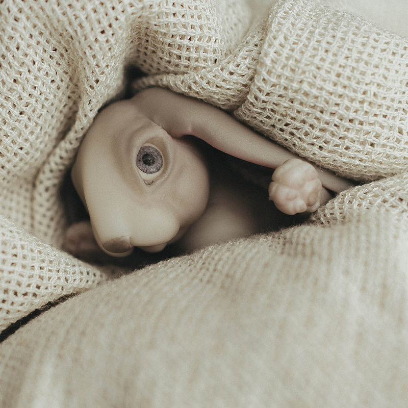 Маленький герой смотрит прямо в глаза и словно зовёт в игру — так и хочется придумать историю и подарить ему уютный дом.
