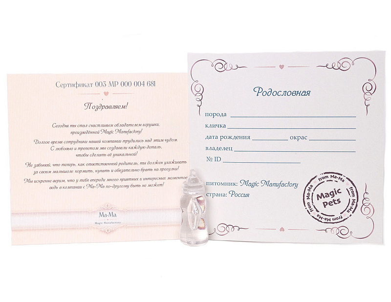 Комплектация: соска-кость, паспорт животного, карточки по уходу