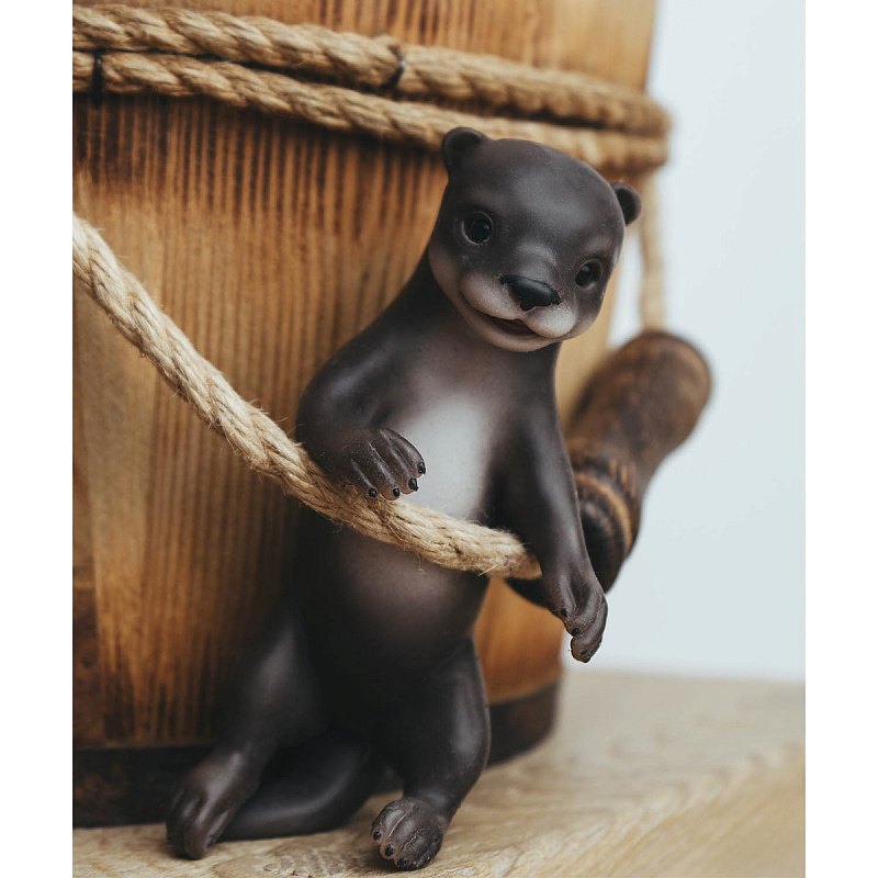 Озорная выдра словно только что выпрыгнула из реки — блестящие глазки и характерная мордочка зовут разыграть историю с нырками и поиском сокровищ.