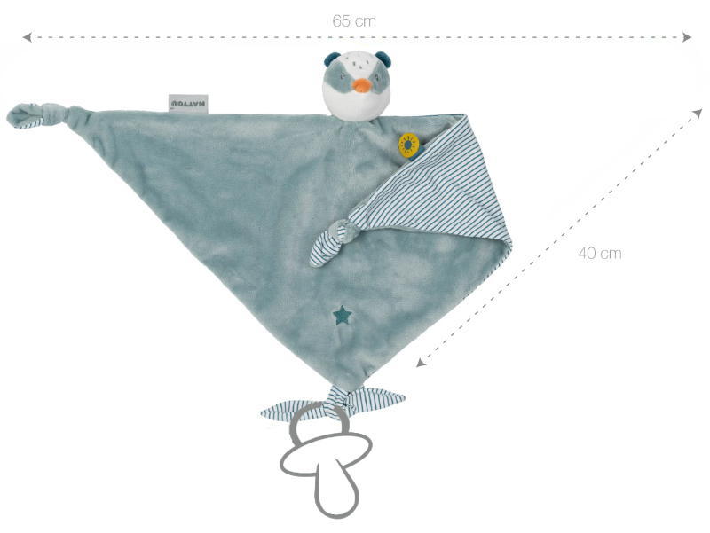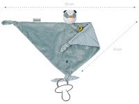 Милый дизайн с маленькой головкой, ушками и красочными этикетками для хватания. Различные возможности захвата для маленьких ручек и пальчиков, например, за голову и ушки. Ленты для крепления пустышки.