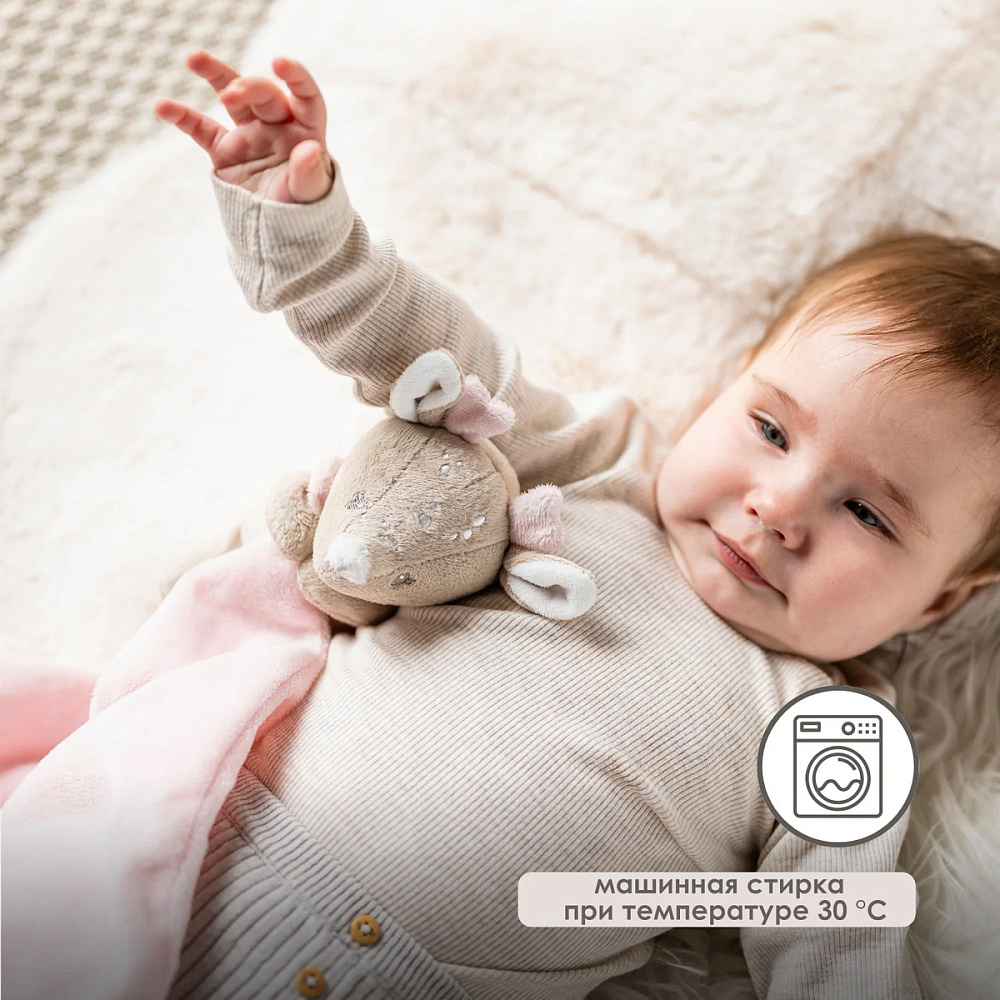 Очаровательная игрушка-комфортер от Nattou в форме маленького слоника станет неразлучным другом вашего малыша с самого рождения. Мягкий велюр дарит чудесные ощущения и обеспечивает чувство защищенности даже для недоношенных детей. Благодаря своему компактному размеру, этот комфортер идеально помещается в маленьких ручках, поэтому ваш малыш сможет легко держать его и брать с собой повсюду. Маленький олень дарит утешение в трудные моменты и успокаивает вашего малыша в дороге или перед сном. Милый комфортер, который является не только источником чувства безопасности, но и прекрасным подарком для малыша на любой случай.