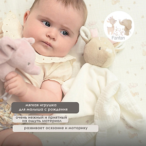 Коллекция FANFAN от Nattou привнесёт в мир вашего малыша частичку волшебства благодаря милым слоникам и оленям, которые станут его мягкими друзьями. От пелёнок для сна до аксессуаров — всё выполнено из мягких материалов в гармоничных цветах, которые излучают спокойствие и нежность. Коллекция FANFAN сочетает в себе милых персонажей и стильный, неподвластный времени дизайн, что делает её тёплым и игривым дополнением к любой детской комнате.