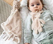 Игрушка doudou — неразлучный друг вашего малыша для с рождения. Идеально подходит для кроватки, прогулок в коляске или игр. Игрушка doudou развивает навык захвата. Кроме того, есть также удобное крепление для соски, которое позволяет всегда держать пустышку под рукой. Легкая и компактная, идеально подходит для маленьких ручек и станет прекрасным подарком для малыша.
