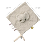 Игрушка Doudou TEDDY Слоник — неразлучный друг вашего малыша для с рождения. Идеально подходит для кроватки, прогулок в коляске или игр. Игрушка doudou развивает навык захвата. Кроме того, есть также удобное крепление для соски.
