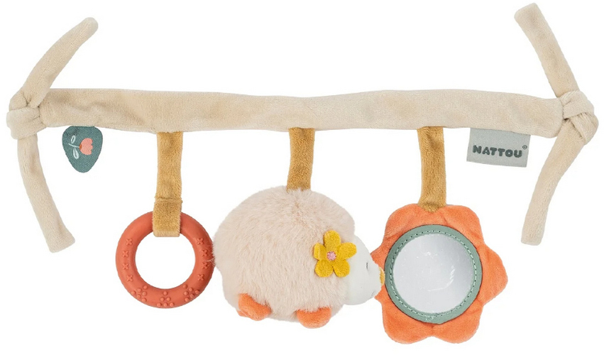 В дороге с вашим малышом? Эта мягкая игрушка-ежик Зои поможет вашему ребенку оставаться активным во время движения. Подвесную игрушку легко прикрепить к коляске или автокреслу. Игрушка-коляска содержит 3 забавных элемента: силиконовый прорезыватель для зубов, плюшевую игрушку и зеркальце. Таким образом, ваш малыш сможет находить и осязать множество сюрпризов. Наряду с забавными звуками, создаваемыми движением, они стимулируют как слуховое, так и моторное развитие вашего малыша.