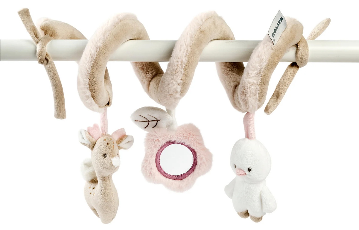 Эта мягкая игровая спираль с забавными элементами — идеальный компаньон для вашего малыша. Забавная погремушка и игрушка с пищалкой побуждают малыша хватать их и обеспечивают часы увлекательной игры. Игрушка стимулирует хватательный рефлекс и слуховое восприятие вашего малыша. Игровую спираль можно легко прикрепить к кроватке, манежу или автокреслу. Это веселое развлечение как дома, так и в дороге, а также оригинальный подарок.