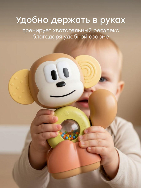 Эта интерактивная погремушка прорезываетесь для мальчиков и девочек в виде весёлой обезьянки создана для всестороннего развития малышей с самого рождения. Её эргономичная форма и яркий дизайн привлекут внимание и подарят положительные эмоции.