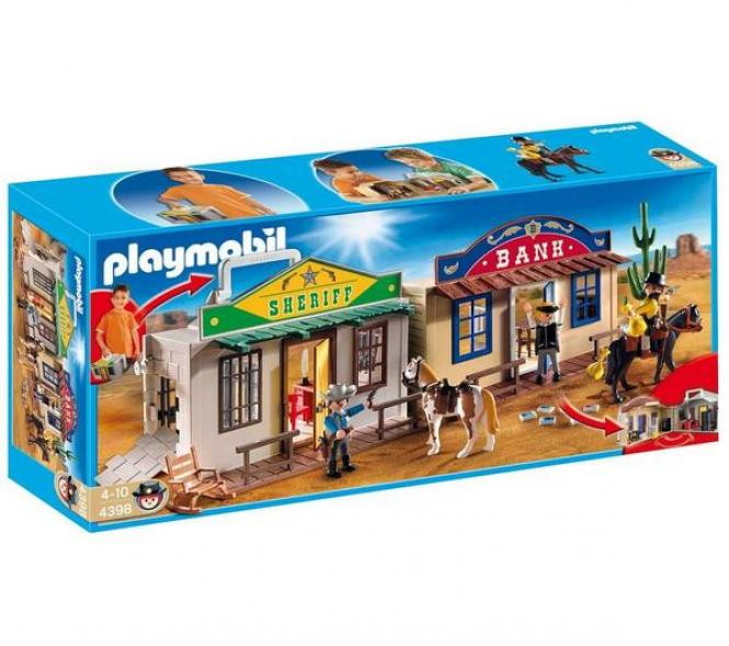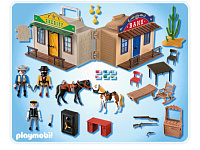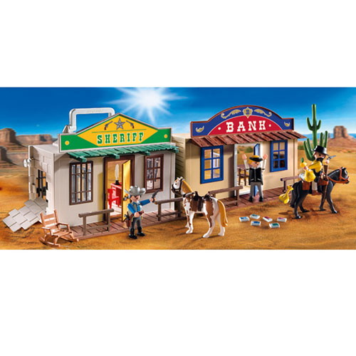 Приключения, ковбои – это так интересно! Только с конструктором Playmobil Дикий запад можно отправиться навстречу увлекательным приключениям. Удивительный сундучок, превращаемый в офис шерифа или здание банка, переносит нас во времена ковбоев! Разыграть можно захватывающую историю ограбления здания Банка известным и опасным грабителем. Но на чеку всегда отважный шериф. Ведь времена Дикого Запада никогда не были спокойными. Конструктор Playmobil дарит уникальную возможность окунуться в атмосферу того времени.