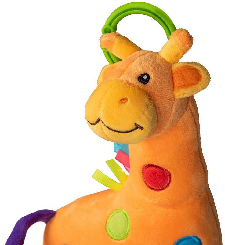 Игрушка способствует развитию у ребенка внимания, мелкой моторики и мышления, тактильных ощущений, восприятия цвета и звука. Универсальное крепление в виде пластикового кольца позволяет фиксировать игрушку к детской кроватке, коляске или манежу.