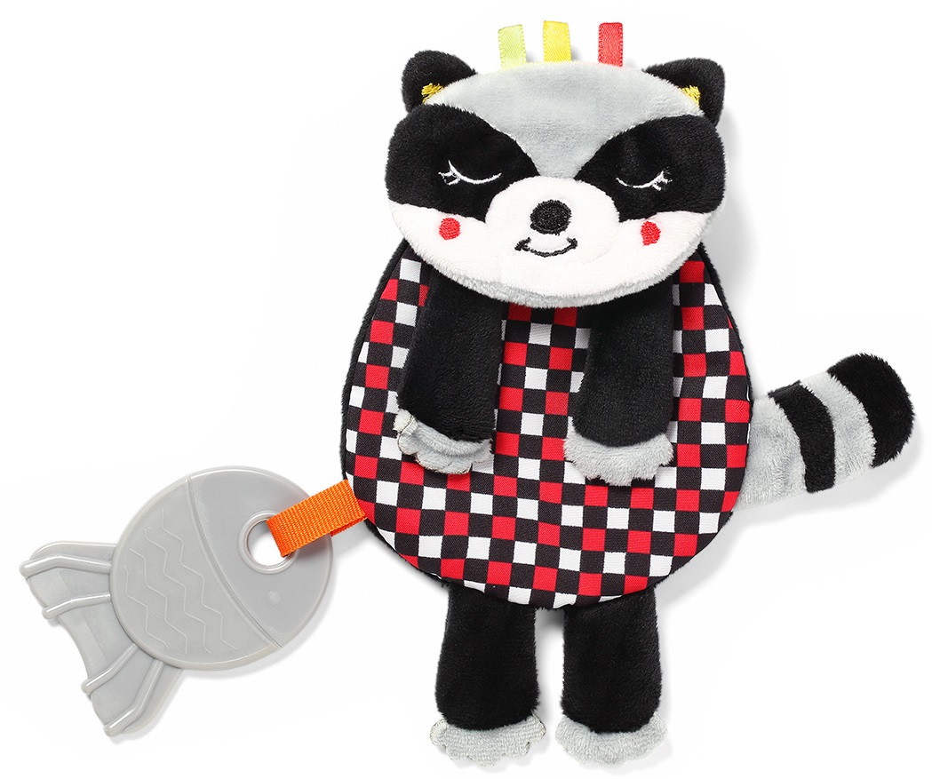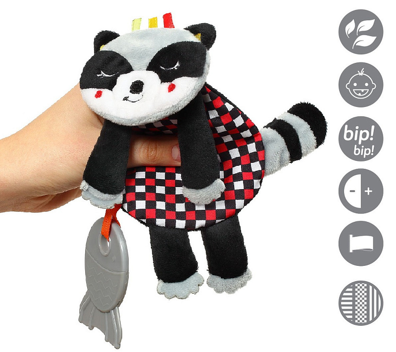 Развивающая игрушка Енот Felix способна стать любимой игрушкой крохи, потому что у нее есть и пищалка, и шуршалка, и прорезыватель и цветные ленточки. Игрушка надолго увлечет малыша. Играя с ней кроха будет развивать необходимые навыки и умения, такие как зрительную и общую координацию, общую и мелкую моторику, навыки захвата. Прорезыватель с пупырышками поможет унять зуд при прорезывании зубов. Игрушка выполнена из разнофактурного материала для сенсорного развития малыша и изучения различных текстур материала. Игрушка характеризуется четкими, контрастными цветами, которые развивают чувство зрения, воображение и концентрацию. Развивающая игрушка является частью коллекции C-More, которая возникла с целью правильного психомоторного развития ребенка. Стимулирует зрение, осязание и слух.