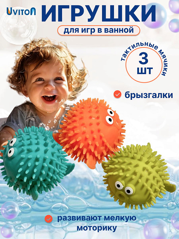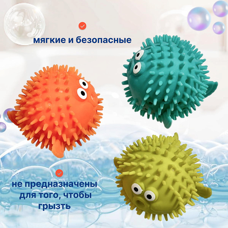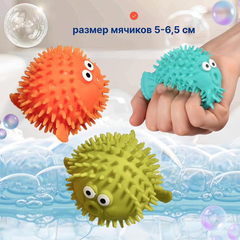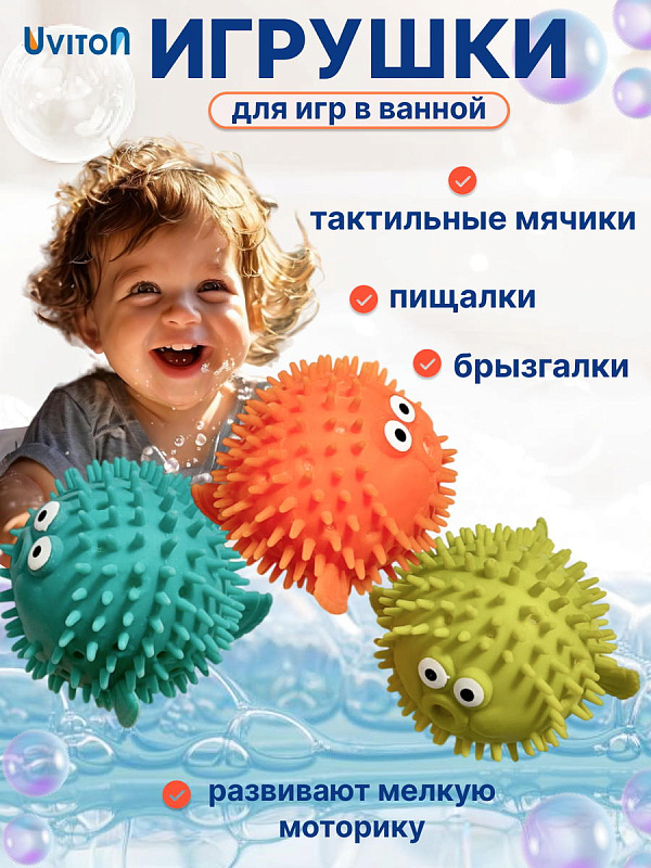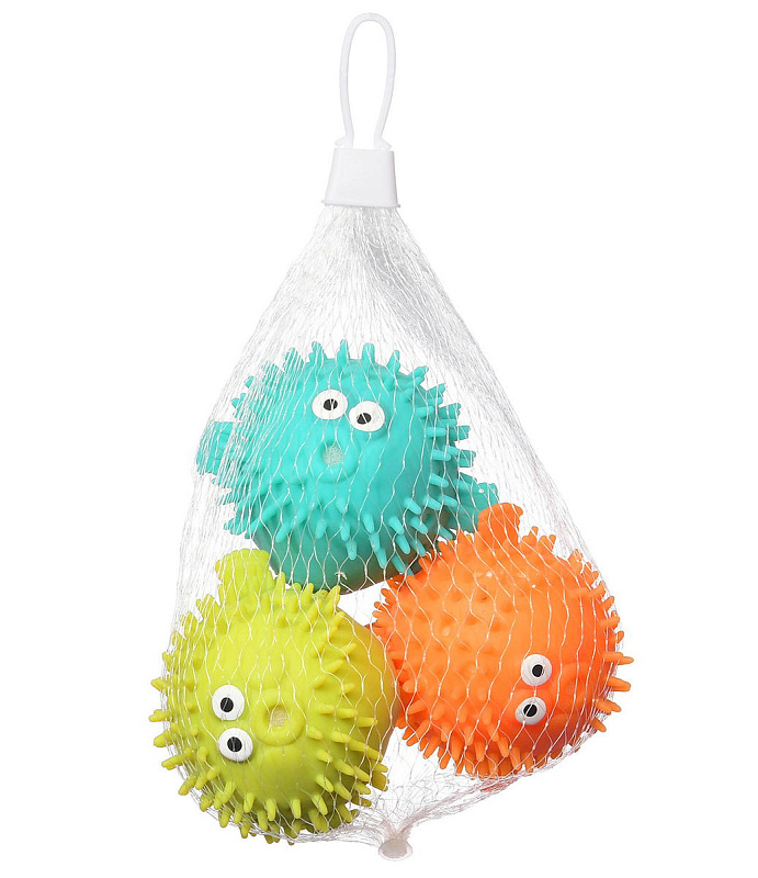 Игрушки можно использовать как брызгалки, сожмите игрушку опустите по воду, внутрь наберется вода, достаньте ее из воды нажмите и через отверстие вода будет вылетать. С яркими тактильными мячиками крохе не только будет весело купаться, но и развиваться. Игрушки изготовлены из безопасного материала, развивают мелкую моторику и могут использоваться для массажа ножек при купании.