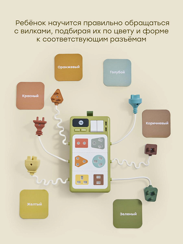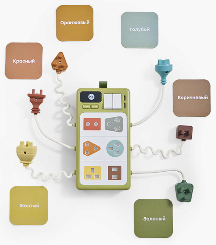 Развитие логики и моторики - ребёнок учится подбирать вилки к розеткам по форме и цвету.