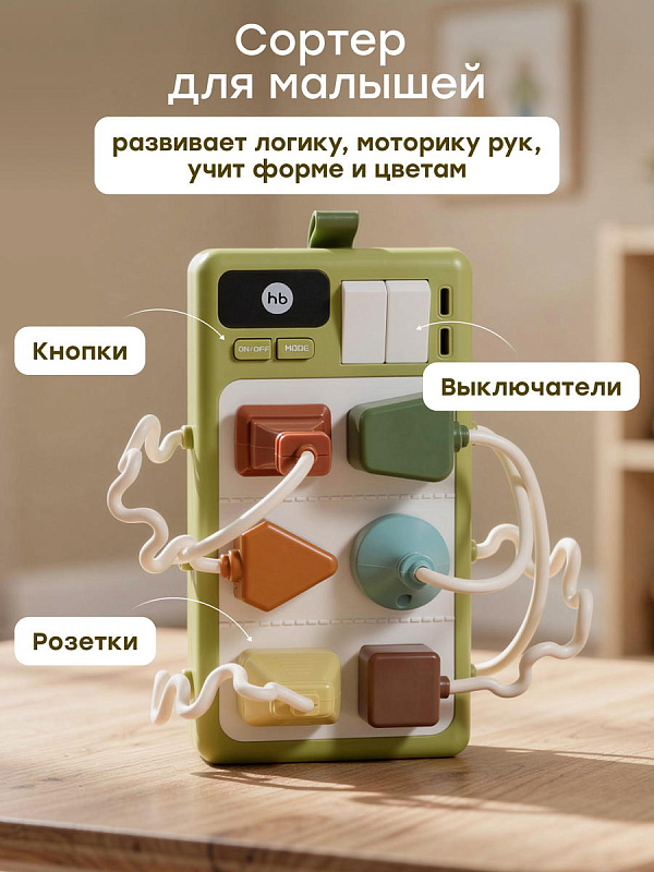 Интерактивный бизиборд SOCKETS — это сортер со звуками эффектами, созданный специально для девочек и мальчиков раннего возраста. Игрушка с эргономичным дизайном легко помещается в маленьких ручках и подходит для всестороннего развития.