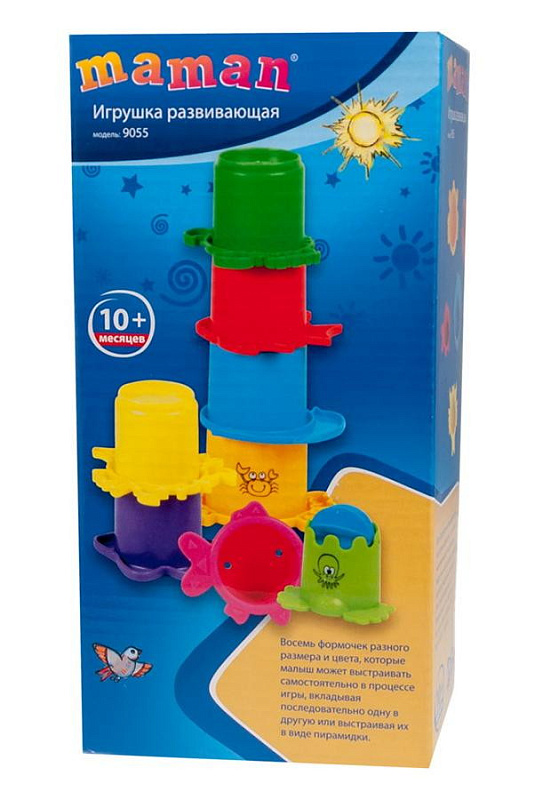 В наборе8 деталей, на каждой формочке есть цифры от 1 до 8