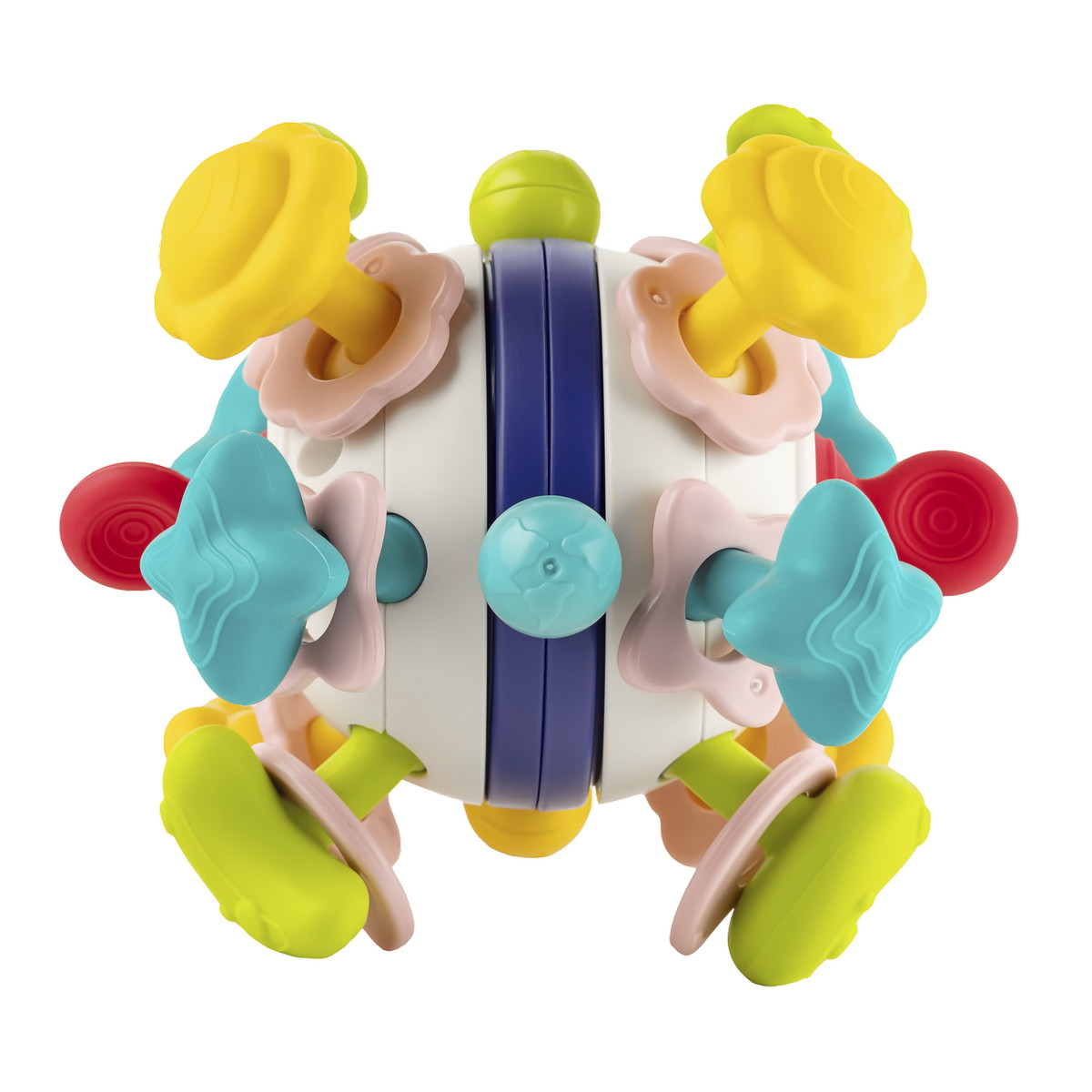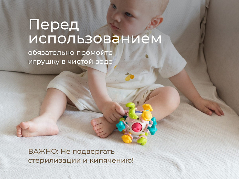 Эта интерактивная игрушка создана для раннего развития малыша. 12 разнофактурных красочных лучиков-прорезывателей мягко массирует десны и подходят для захвата маленькими пальчиками. Половинки корпуса шара вращаются на 360 градусов, издавая приятные трещащие звуки, и развивают слух и внимание. Гибкие красные ушки игрушки можно тянуть и нажимать: это стимулирует моторику и мышление. подходит для дома и занимает в дороге.