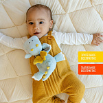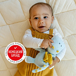 Внутри игрушки есть мешочек с виноградными косточками, который легко достать, расстегнув липучку. Если разогреть мешочек в духовке, то игрушка превратится в грелку. Положите её на животик малыша, чтобы облегчить состояние при коликах. Если же нужно сделать холодный компресс, например при ушибах, то мешочек с виноградными косточками нужно охладить.
