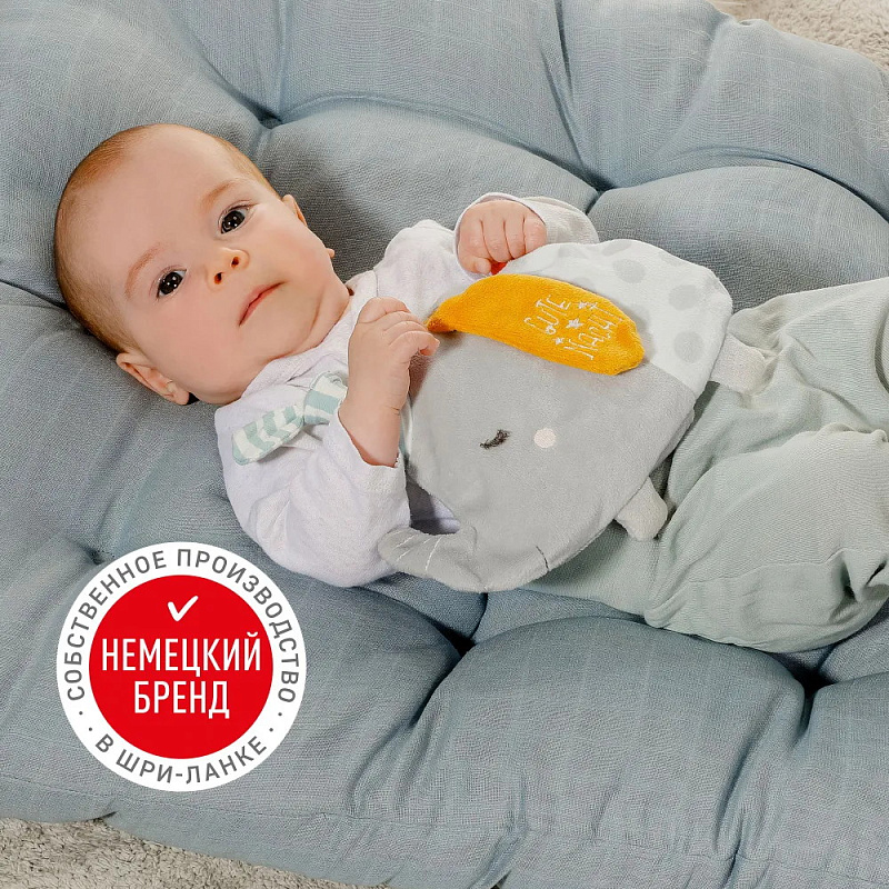 Очаровательный слонёнок – это не просто мягкая игрушка, а еще и грелка с виноградными косточками. С ним приятно обниматься и засыпать.