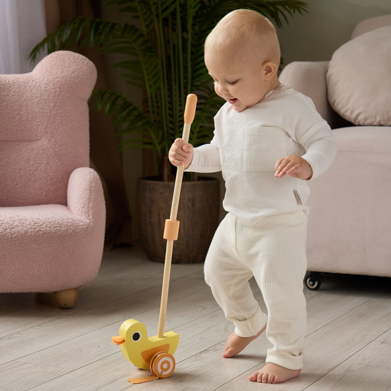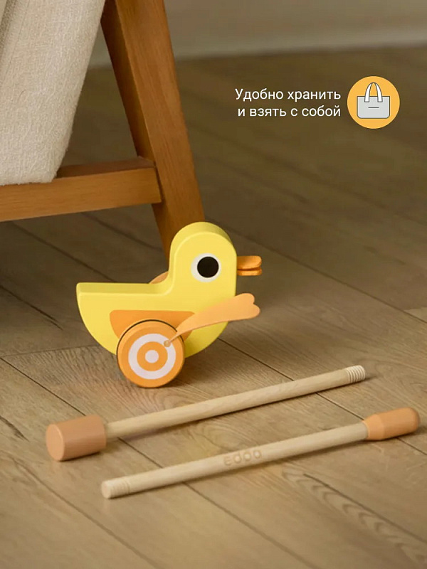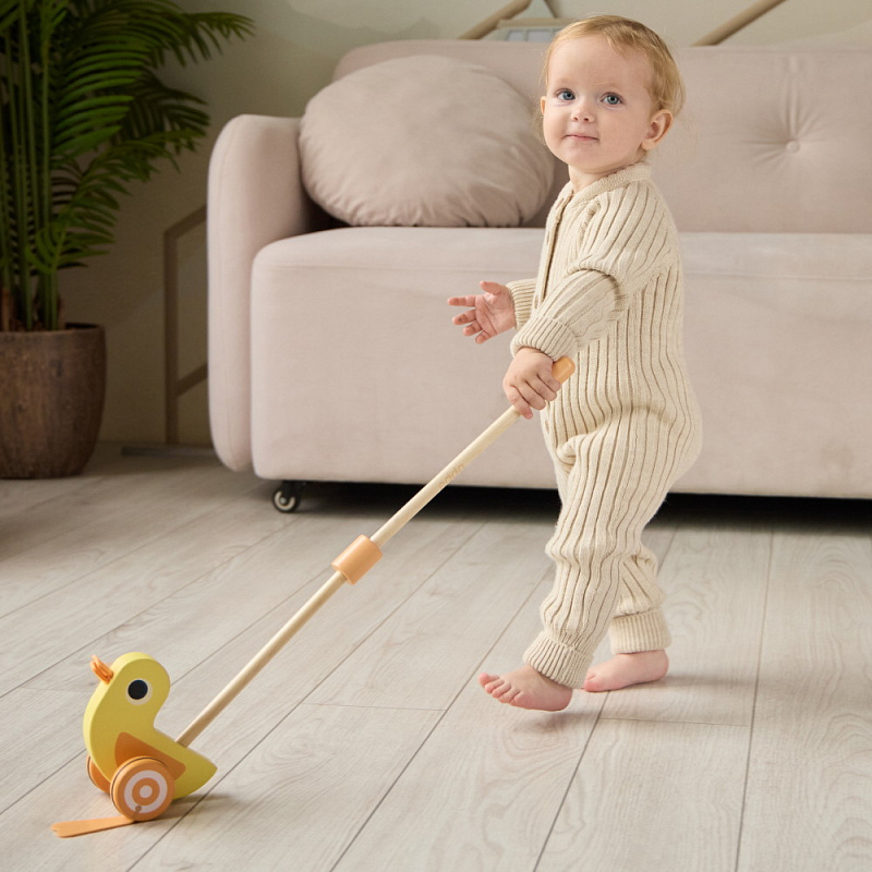 При ходьбе с утёнком ребёнок развивает координацию движений, укрепляет мышцы и учится держать равновесие. Озорной дизайн и плавные линии игрушки привлекают внимание детей. Игрушка станет идеальным подарком для малышей, которые только учатся ходить. Утёнок-каталка edda — это первый шаг к большим открытиям.