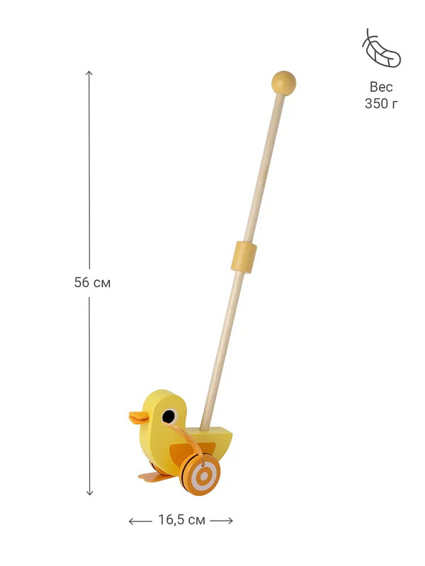 Игрушка-каталка станет верным спутником малыша в его первых путешествиях. Утёнок весело перебирает лапками при движении, словно настоящий, что вызывает восторг у детей и помогает им делать первые шаги с удовольствием. Удобная ручка, устойчивая конструкция и безопасные материалы делают игру полезной и увлекательной.
