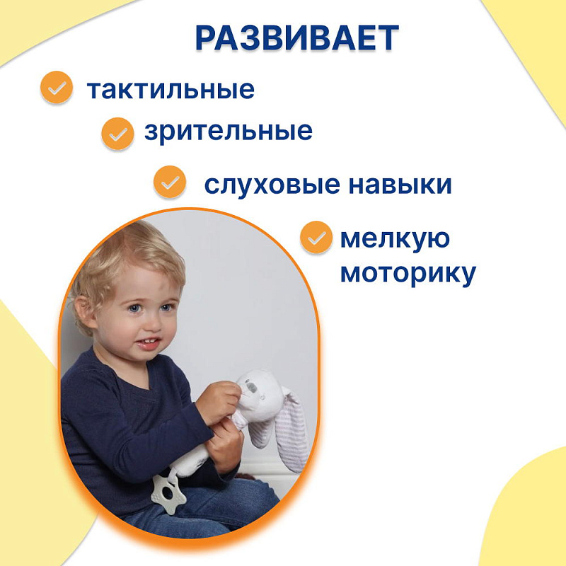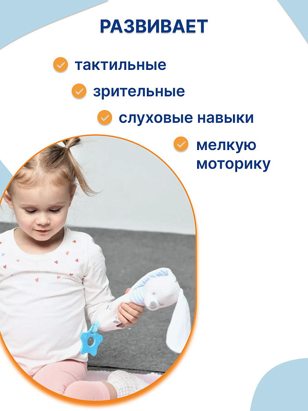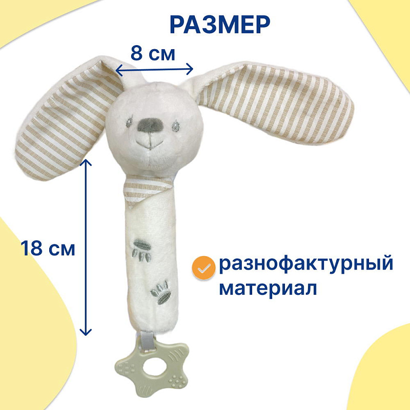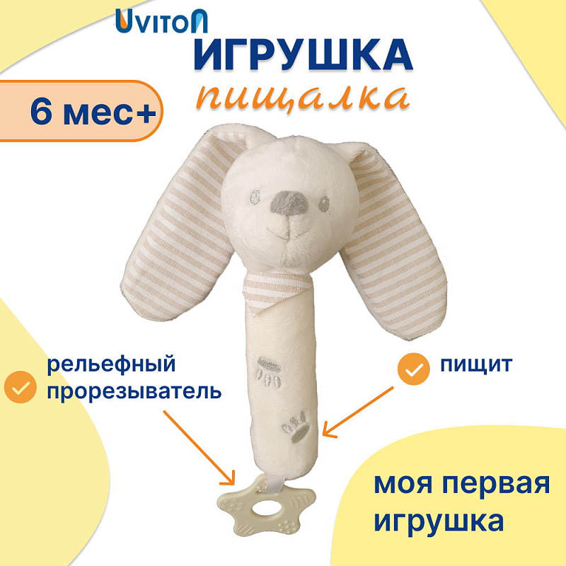 Мягкая игрушка-пищалка "baby Bunny" от Uviton с прорезывателем, вызовет у крохи положительные эмоции и послужит развитию слуха, хватательных рефлексов и тактильного восприятия.