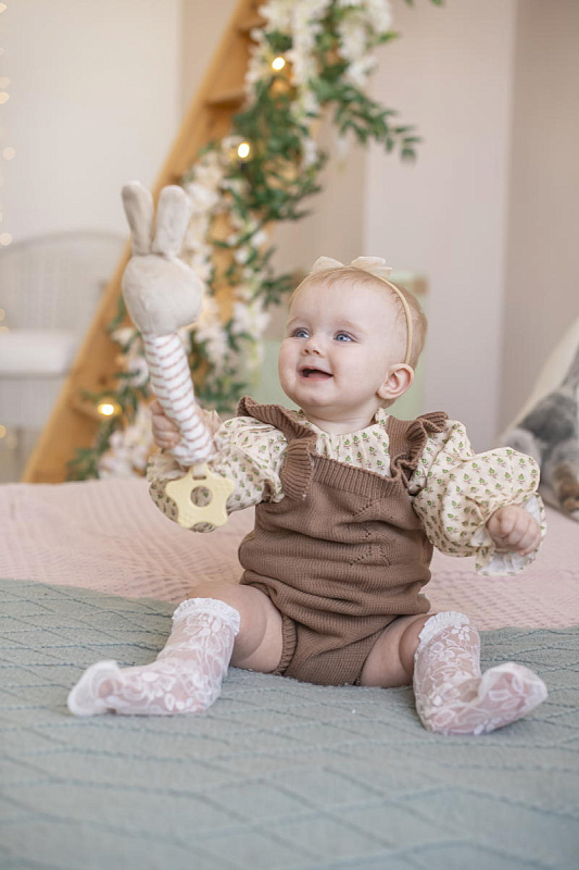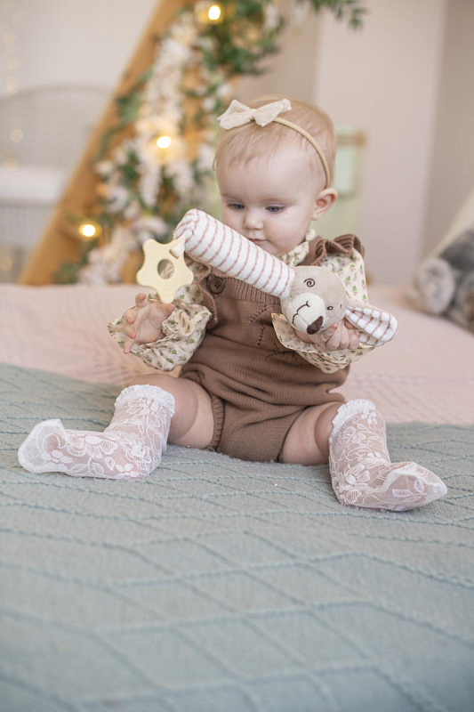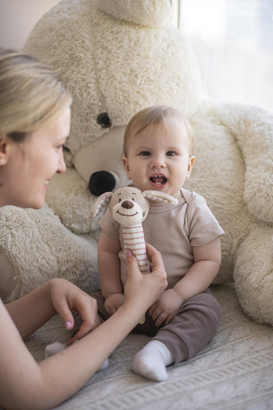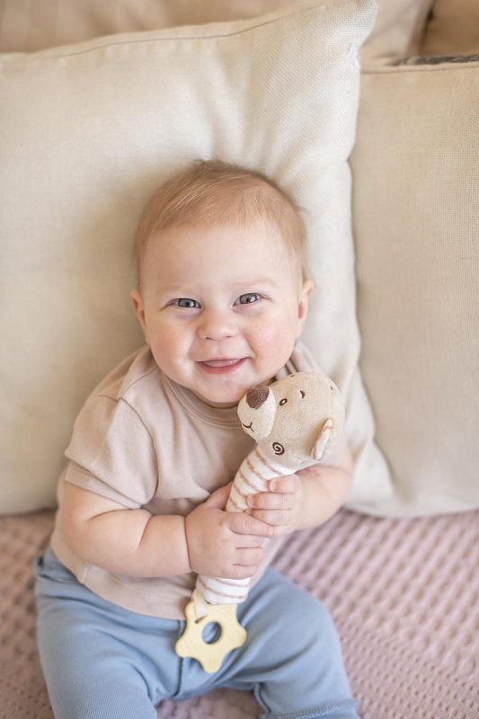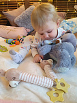 В процессе игры ребенок будет развивать слуховое восприятие, хватательный рефлекс, мелкую моторику и тактильные навыки.