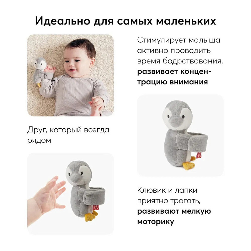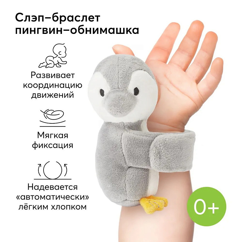 Благодаря браслету с малышом всегда рядом мягкий улыбчивый друг. Браслет нежно фиксируется на запястье. Игрушка стимулирует малыша двигать руками, активно проводить время бодрствования и учиться сознательно управлять своим телом. Идеально подходит для детей, которые ещё не умеют держать предметы.